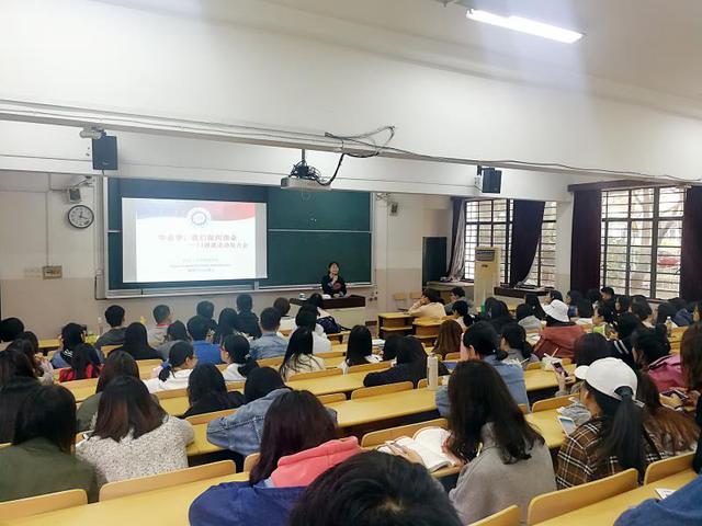 为进一步引导2018届本科毕业生认清当前就业形势、准确把握就业政策,11月6日中午,社会学院在徐汇校区六教101召开毕业班年级大会暨就业促进会,对2018届就业工作进行广泛动员。本次动员大会由14级辅导员曹亮主持,社会学院党委副书记、学工委主任万胤婕,2013级毕业班就业辅导员常亚琼参加大会。
