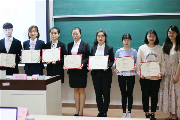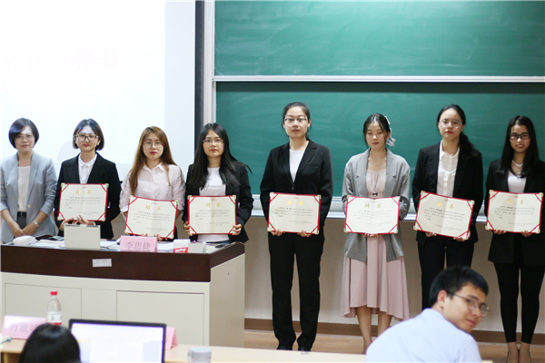 大会颁奖环节,万胤婕、严任舟以及韩伟老师分别为获奖者以及主席团、部长们颁发2017-2018年度社会与英国正版365官方网站研会“优秀个人奖”和2017-2018年度社会与英国正版365官方网站第十三届研会主席团、部长聘书。