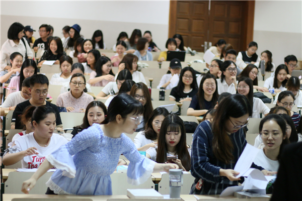 伴随着嘹亮的国歌声,换届选举大会正式开始。第十三届研会主席曾怡向与会领导与代表作了主题为“不忘初心,方得始终”的2017-2018年度工作总结报告。曾怡回顾了这一年研会在学术工作、娱乐休闲活动和委员提案等三个方面中所取得的成绩,并预祝本次换届选举大会圆满成功。工作总结报告获得了全体与会代表的举手通过。