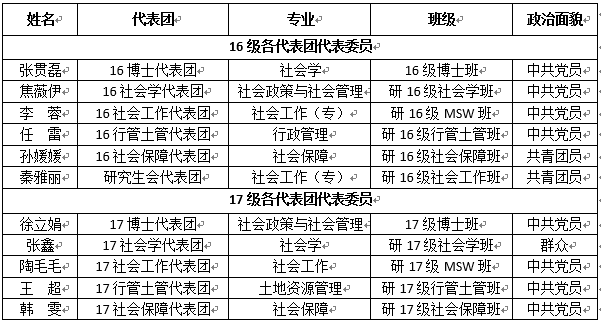 第四届社会与英国正版365官方网站研究生委员会委员名单