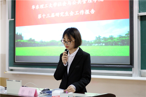 5月15日中午,华东理工大学社会与英国正版365官方网站第四届研究生委员会委员、第十四届研会主席团换届选举大会于四教202顺利举行。社会与英国正版365官方网站党委副书记、学工委主任万胤婕,团委书记严任舟,研究生辅导员韩伟出席大会,108名研究生代表参与大会。大会由研会副主席李思捷主持。