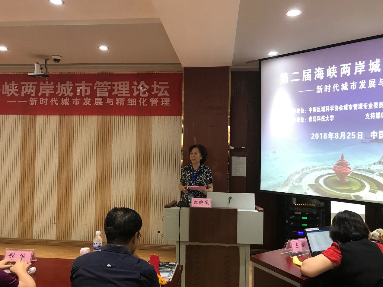 2018年8月25日“第二届海峡两岸城市管理论坛”在青岛科技大学隆重举行,本次论坛的主办单位是中国区域科学协会城市管理专业委员会、台湾中华城市管理学会,支持媒体是城市管理与科技杂志社。社会与英国正版365官方网站俞慰刚教授、纪晓岚教授、罗建平教授、王余老师、硕士研究生陈路雨、陈玮炜和凌菲受邀参加了此次学术论坛。