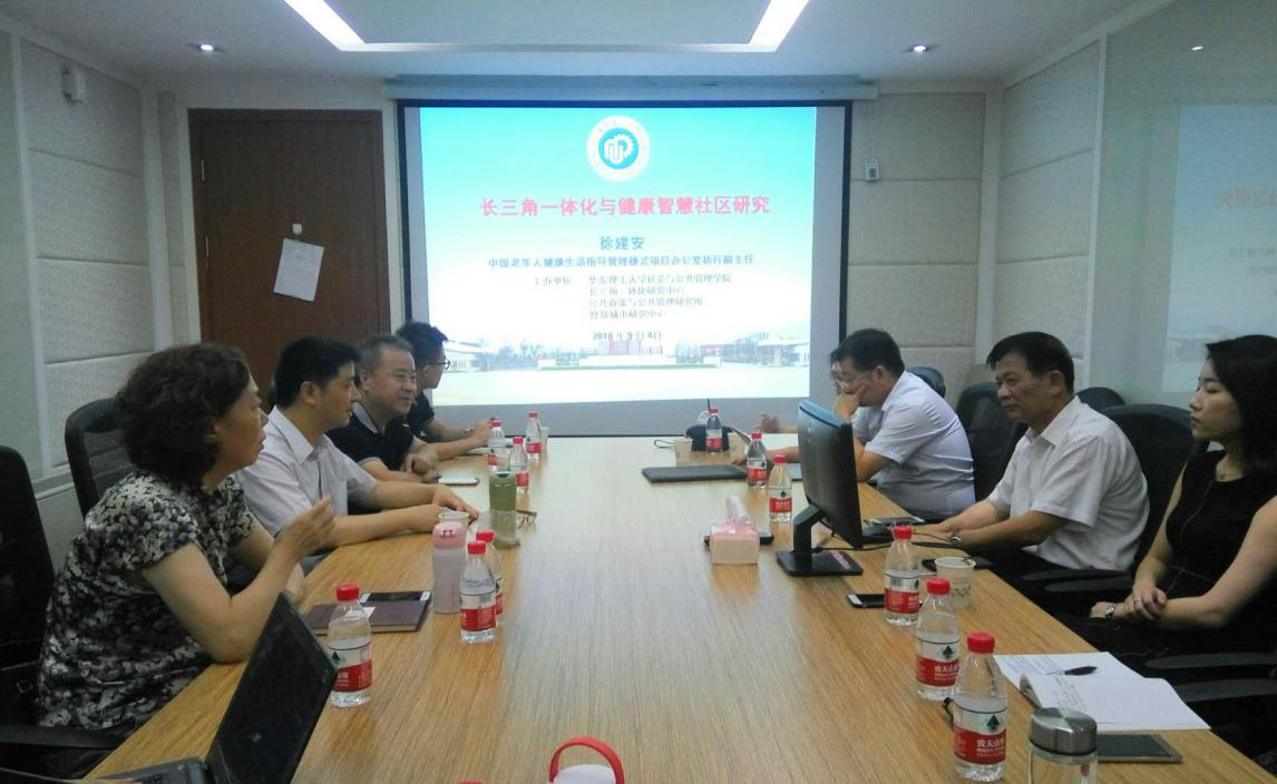 2018年9月4日下午,英国365官网长三角一体化研究中心、公共政策与公共管理研究所以及信息学院智慧城市研究中心联合举办的长三角一体化系列高层论坛第六讲在社会与英国正版365官方网站318会议室顺利举行。本次论坛邀请了中国老年人健康生活指导管理模式项目办公室执行副主任徐建安做主题报告,题目是“长三角一体化与健康智慧社区研究”。上海理工大学管理学院副院长张永庆教授、英国365官网长三角一体化研究中心团队全体成员及博士生、研究生参加了会议。会议由长三角一体化研究中心主任纪晓岚教授和公共政策与公共管理研究所所长罗建平教授主持。