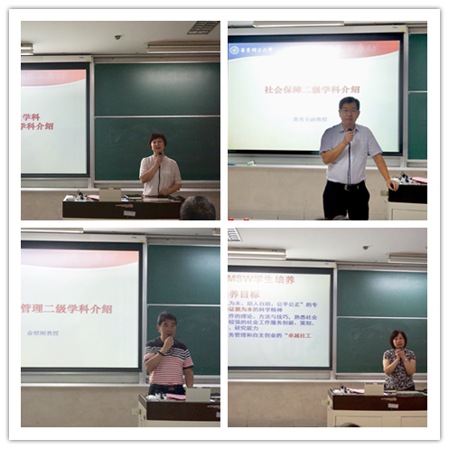紧接着,各学位点负责导师向新生介绍各一级二级学科发展情况。郭圣莉教授向研究生新生介绍了公共管理一级学科及行政管理二级学科,她希望同学们在华理的求学生活中培养出科学的学术精神和良好的素养。龚秀全副教授详细介绍了社会保障二级学科,他通过向新生们展示鲜活生动的学习案例,激发同学们的学习热情和崇高的理想,并真诚地祝福同学们收获美好的未来。俞慰刚教授向同学们介绍了土地资源管理二级学科,他从选课、生活等生活与学习的细节方面对同学们表示出关心,并对同学们的美好未来充满期待。费梅萍教授就社会工作专业的培养方案、培养目标、实习基地等方面作了细致的讲解,她希望同学们都能拥有国际的视野,华理社会工作专业的同学们都能成为“卓越社工师”。
