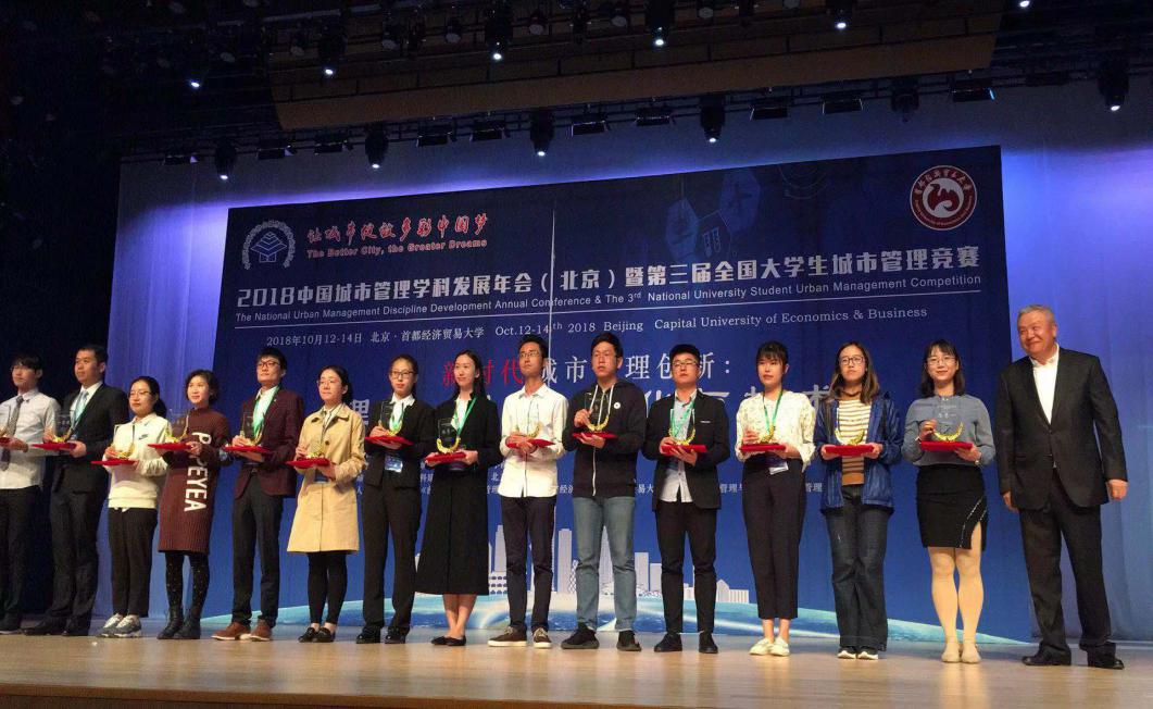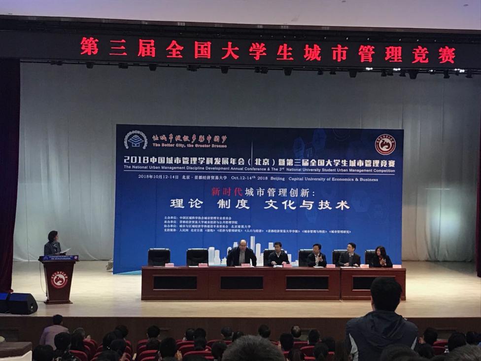 2018年10月12-14日,“2018中国城市管理学科发展年会(北京)暨第三届全国大学生城市管理竞赛”在首都经济贸易大学隆重举行。本次年会由中国区域科学协会城市管理专业委员会主办,首都经济贸易大学城市经济与英国正版365官方网站承办。英国365官网纪晓岚教授、俞慰刚教授、博士研究生沈菊生、硕士研究生陈玮炜和金铂皓应邀参与了此次年会。