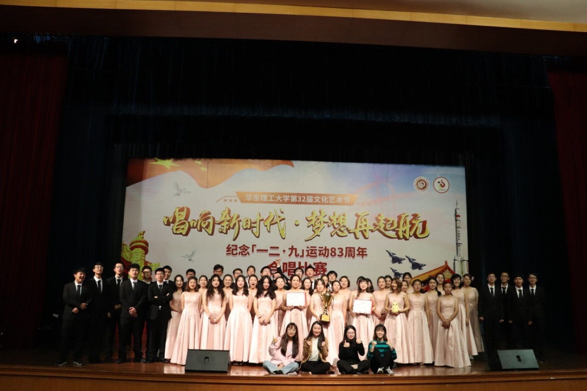 125日晚,华东理工大学在奉贤校区大活八百举办了“唱响新时代,梦想再起航”——纪念“一二·九”运动83周年合唱比赛。社会学院凭借出色的表现获当晚合唱比赛冠军及最佳人气奖双料冠军。