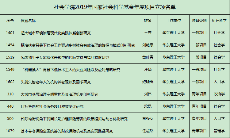 华东理工大学社会与英国正版365官方网站2019年国家社科基金项目一览表