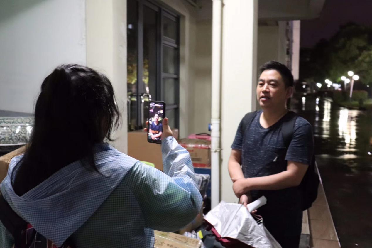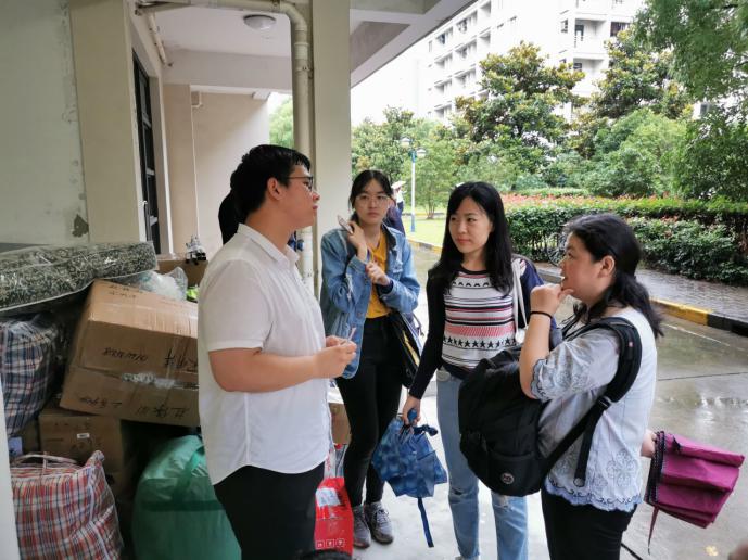 老师在12日晚上进宿舍关心同学们行李收拾情况,叮嘱13号搬迁注意事项。