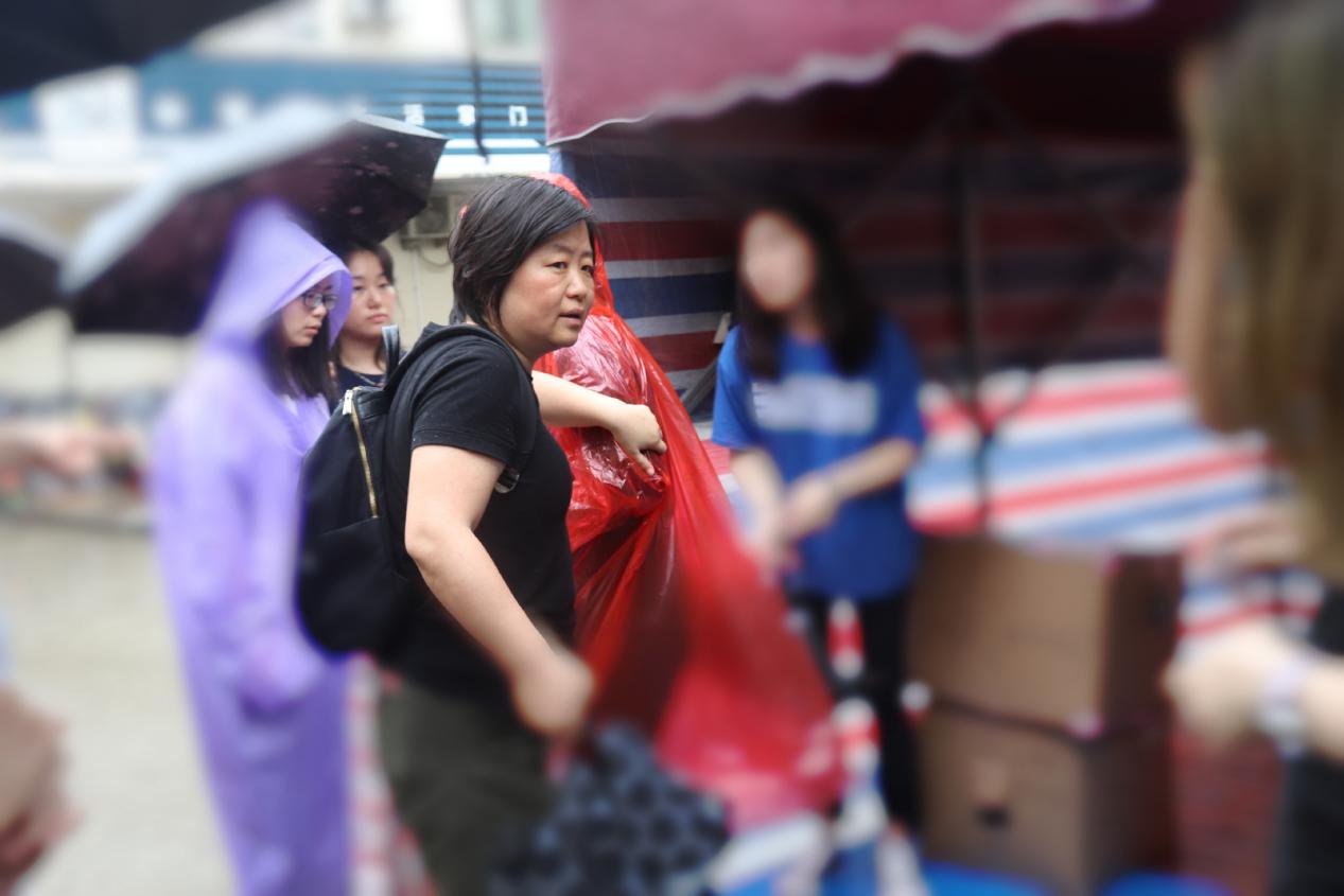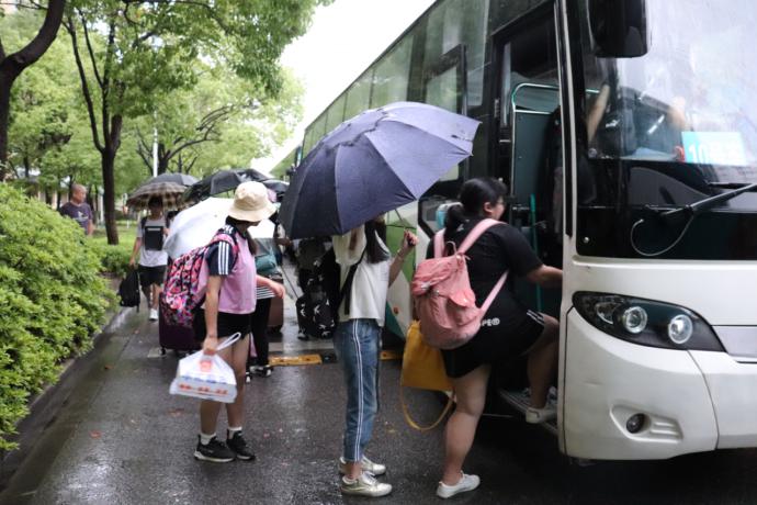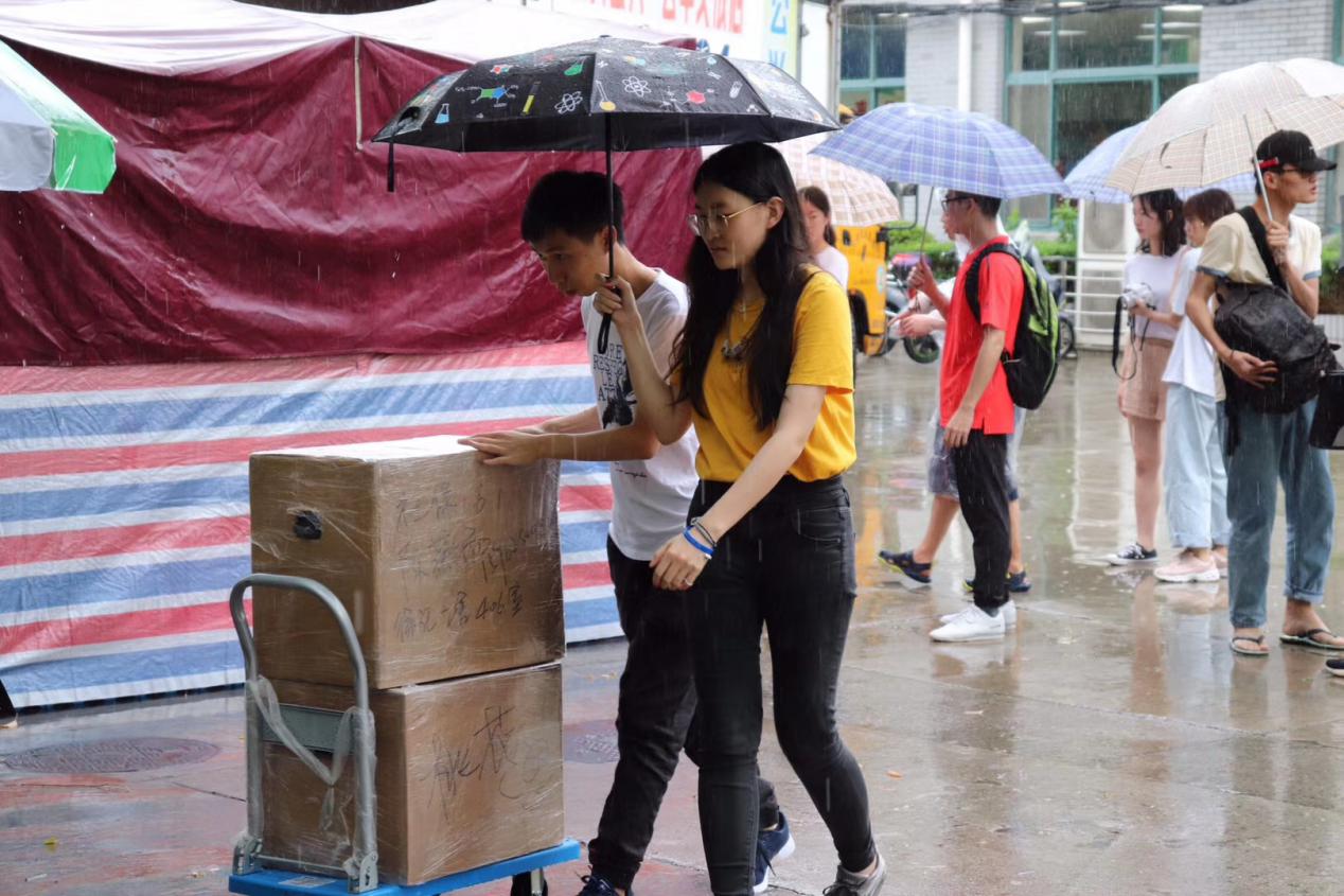 七点多钟,三个批次陆续到达徐汇校区。冒着大雨,在义务搬迁志愿者的协助之下,很快地完成了行李的卸货与运输。
