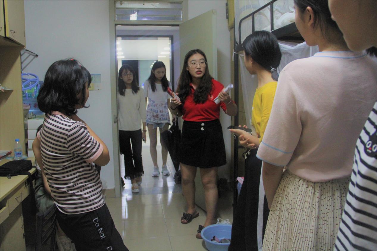 晚上七点,19级辅导员老师和19级新生的督导员们来到了宿舍楼,为新生们悉心解答大学学习生活中需要注意的问题,再次强调不要轻信各种推销人员、注意人身财产安全,表达了学校对新一届华理学子的亲切关怀。