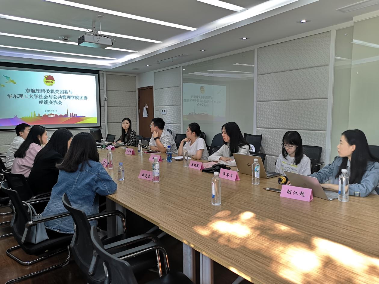 2019年10月18日,东方航空销售机关团委(以下简称东航机关团委)莅临我校与社会与英国正版365官方网站团委(以下简称社会学院团委)进行互访交流。东航销售委员会机关团委书记逄菲,团委委员王世杰、夏青,团委青年代表韩笑雪;社会与英国正版365官方网站团委书记严任舟老师,团委副书记姜忱老师,吴怡、吕高月、胡江越、戴雨晨等青年学生代表出席本次交流活动。