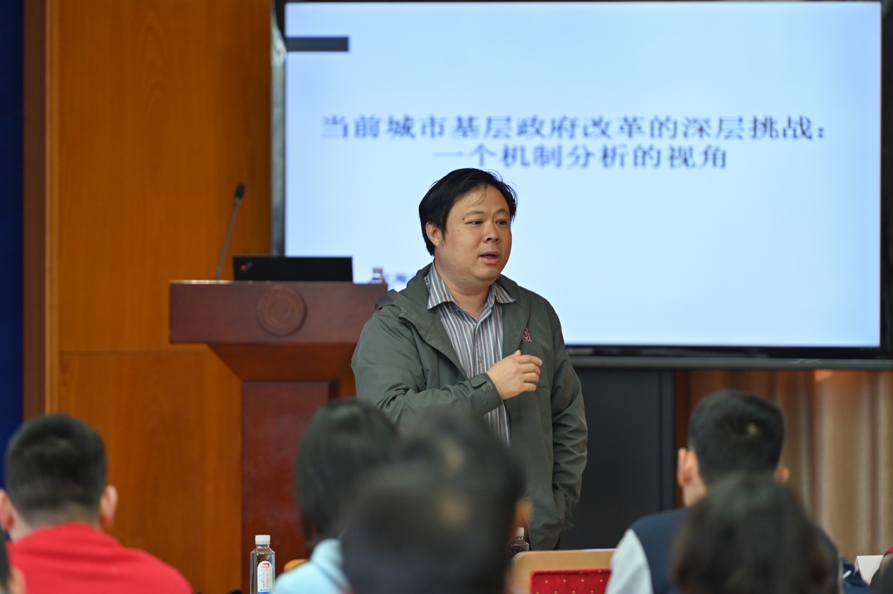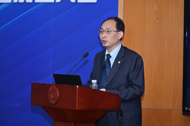 图片说明:何海兵教授在做主题演讲