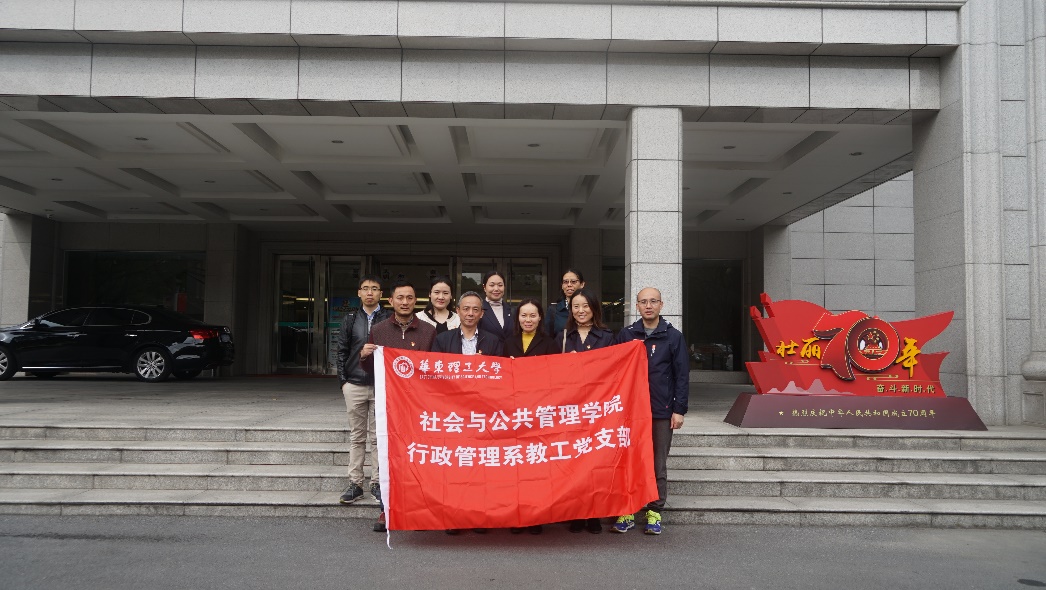 为深入开展“不忘初心、牢记使命”主题教育,了解红色革命故事和乡村振兴的实践创新,加强支部结对工作,行政管理系教工党支部结合本支部的专业特点,于1122日组织本支部党员,赴奉贤区南桥镇开展“踏寻红色足迹,走近美丽乡村”主题党日活动。