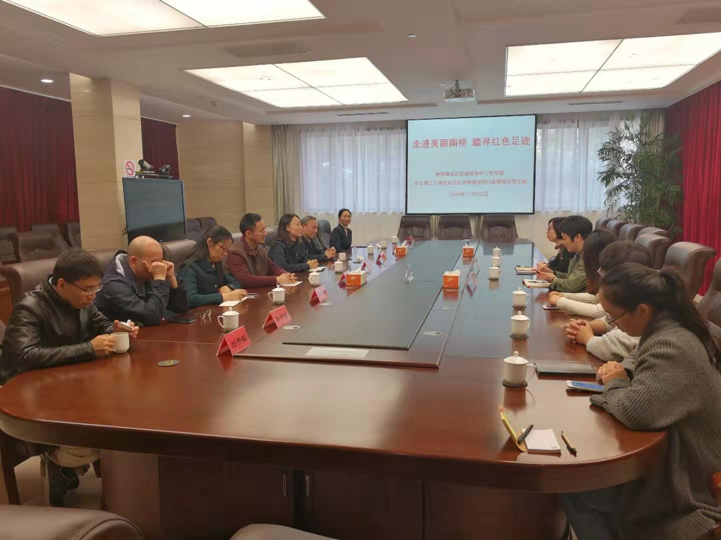 最后,就支部结对工作的深入,与南桥镇社区党建服务中心党支部进行了座谈,双方结合各自的资源优势,就教学调研、学生实践、志愿服务等方面进行了深入探讨,为进一步利用双方资源,协作共进,深入推进高校与政府战略合作新模式奠定了基础。