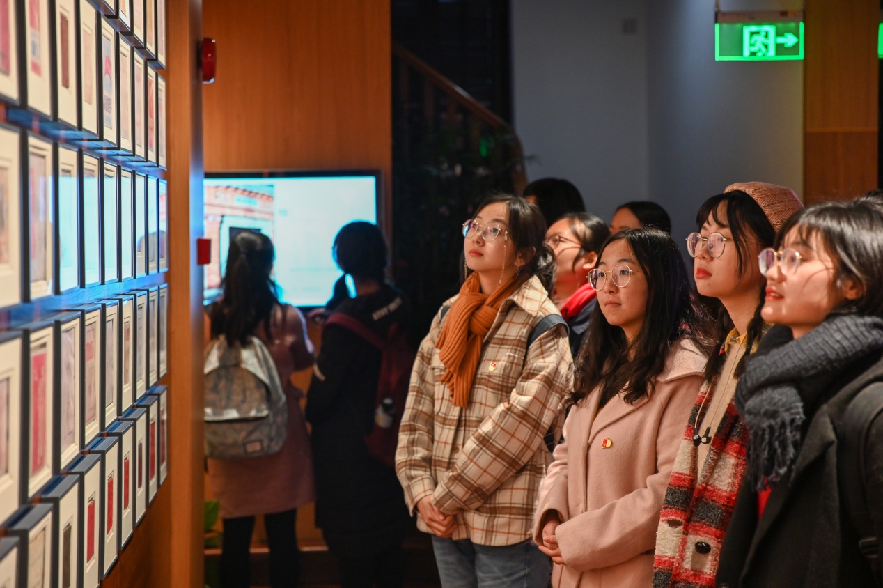 中共二大是党章诞生地,党章历程厅收藏了百余种不同年代、不同版本的党章,大家借助多媒体技术翻阅了不同时期的党章,了解党章所处历史阶段的背景,加深了对于党章的理解。“平民女校”展厅则重现了我党第一个培养妇女干部的学校风貌,大家走进课堂,亲身感受了革命女性追求真理、向往解放的过程。