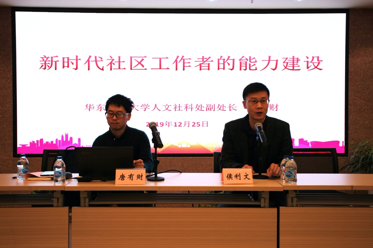 唐有财副教授以“新时代社区工作者能力建设的方向和路径”进行督导与培训,具体分析了新时代社区治理的形势和要求,用通俗易懂的理论和大量的案例,指出了社区工作需要具备的素质与能力;侯利文副研究员介绍了“1+4+4+6+N”的社区工作者能力督导方案,同时介绍了华东理工大学的督导小组成员,对项目实施过程进行了详细诠释。