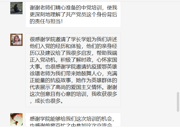 本次线上培训结束时参训学员结合抗疫专题学习和个人实际撰写思想汇报;结合培训目标、培训内容和自身学习实际撰写培训总结。最后,通过培训的考核测试,学员们再一次巩固了有关党的相关基础理论,加深了对党的认识。学员们都纷纷表示此次线上培训让他们对党有了更深入的认识并且受益匪浅。