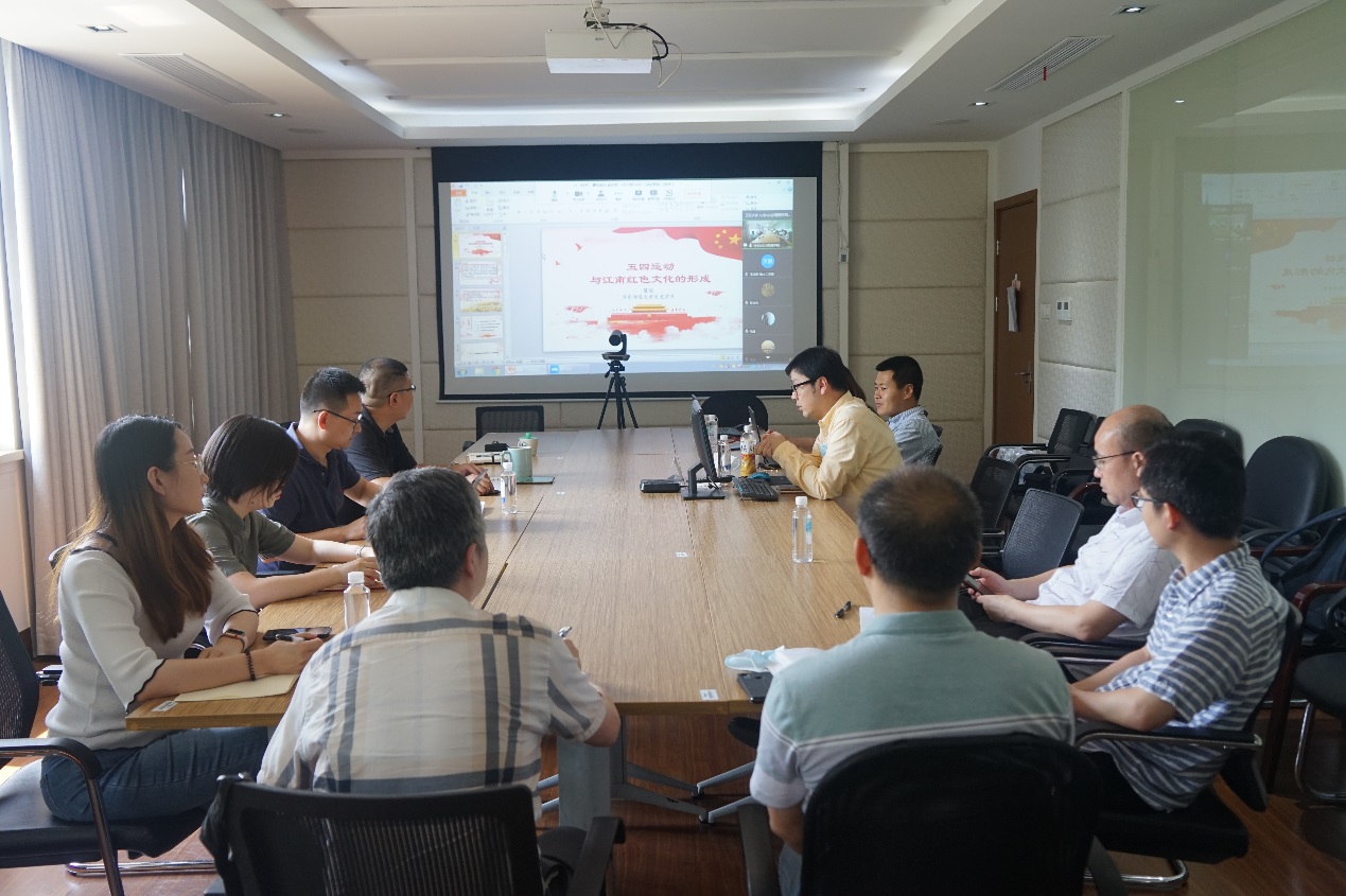 为扎实推进“四史”学习教育, 6月30日,社会与英国正版365官方网站举行“四史”学习教育专题理论学习,邀请上海市委讲师团“四史”专家宣讲团专家、华东师范大学历史学系瞿骏教授作题为“五四运动与江南红色文化形成”的专题讲座。学院党委中心组成员、全体教职工和学生党员分线上线下参加报告会。