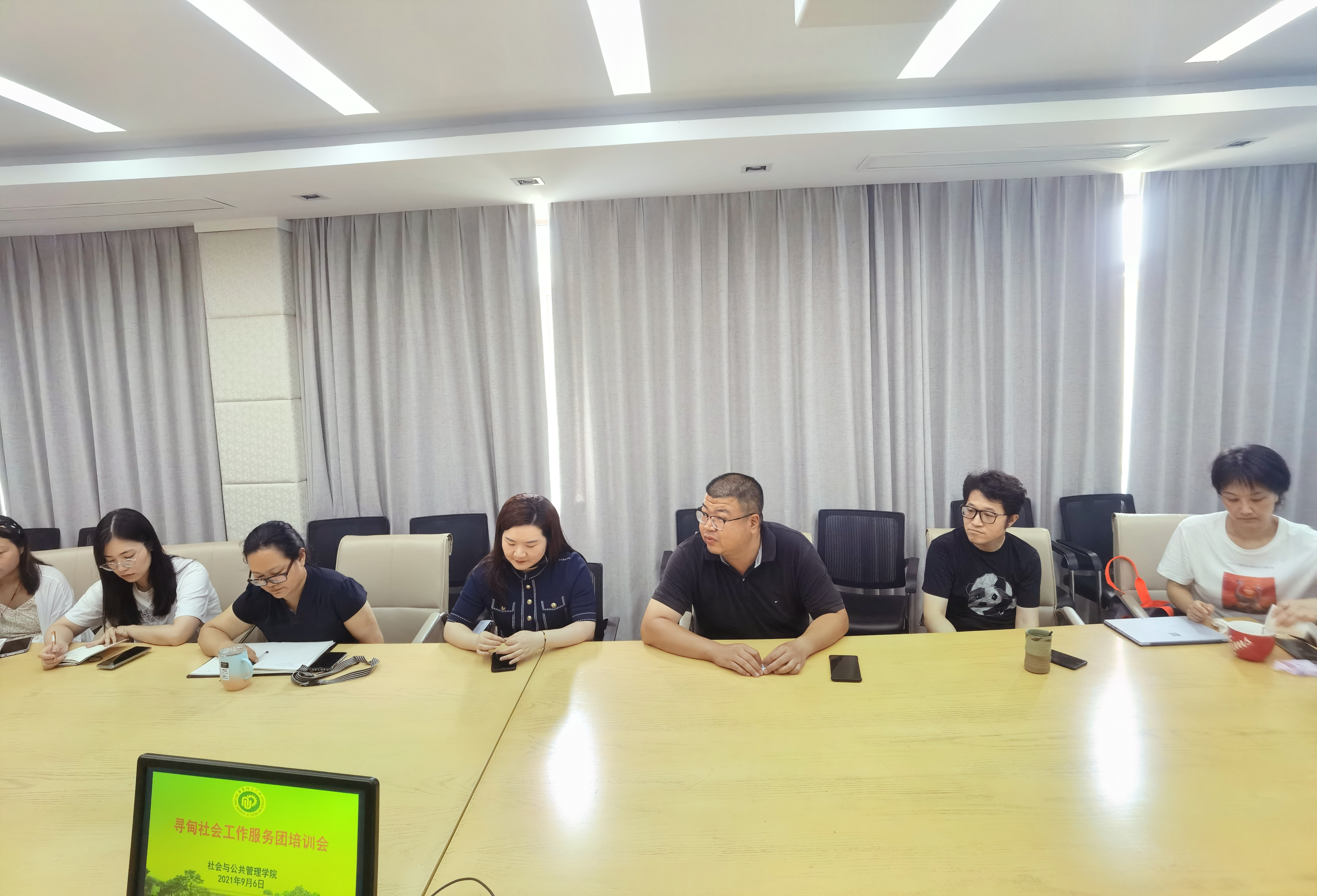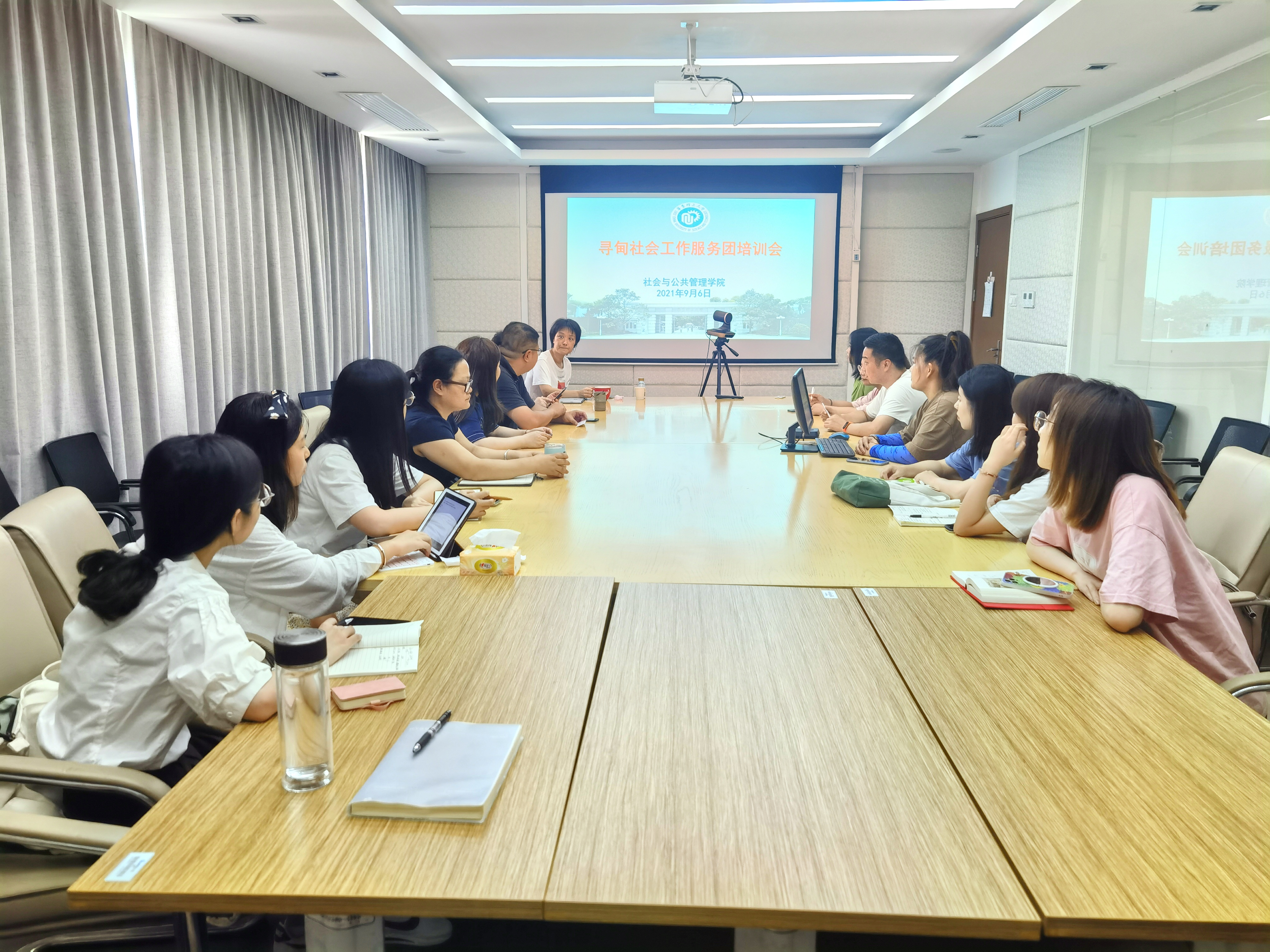 2021年9月6日下午,华东理工大学寻甸社会工作服务团培训会暨2021年实习启动会顺利开展。学院党委副书记储琰、社会工作与社会政策研究院副院长黄锐、社工系副主任徐选国、学院专业学位中心副主任刘艳霞、MSW教育中心副主任陈蓓丽副、实习专任教师聂华萱老师,以及8名2020级MSW学生共同参与了“寻甸社会工作服务团”培训会。