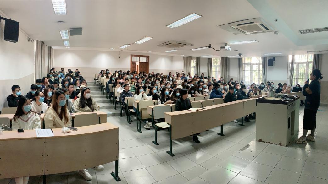 杨洁向毕业生介绍了毕业论文撰写的相关流程和时间节点,叮嘱毕业班学生在繁忙的升学备考和求职就业同时,要守好学业底线,按要求完成毕业论文。