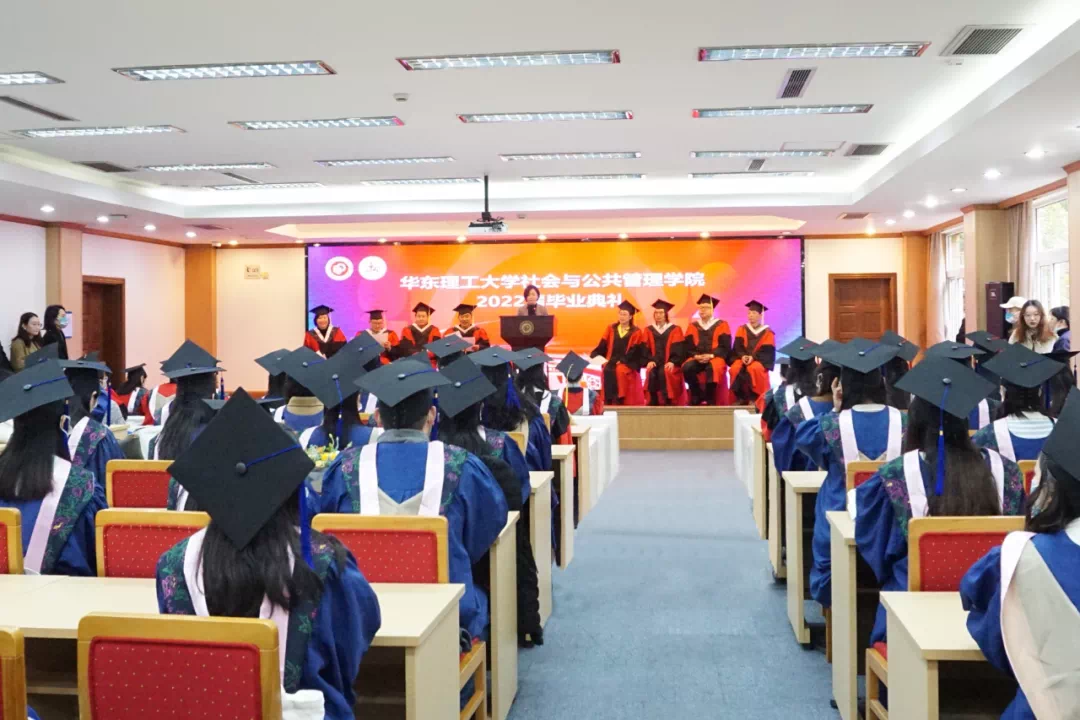 2022年1月10日上午,华东理工大学社会与英国正版365官方网站2022年研究生毕业典礼分社会学科和公共管理学科硕士研究生和春季博士研究生、MSW专业硕士研究生两场在徐汇校区逸夫楼演讲厅隆重举行。