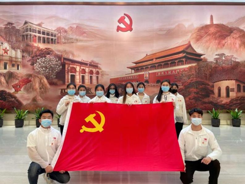 在一天的志愿服务工作结束后,在宣誓厅内中国共产党党旗前,支部党员们一同高举右拳,重温入党誓词。一句句铮铮誓言更加坚定了党员们为人民服务的初心和信念。