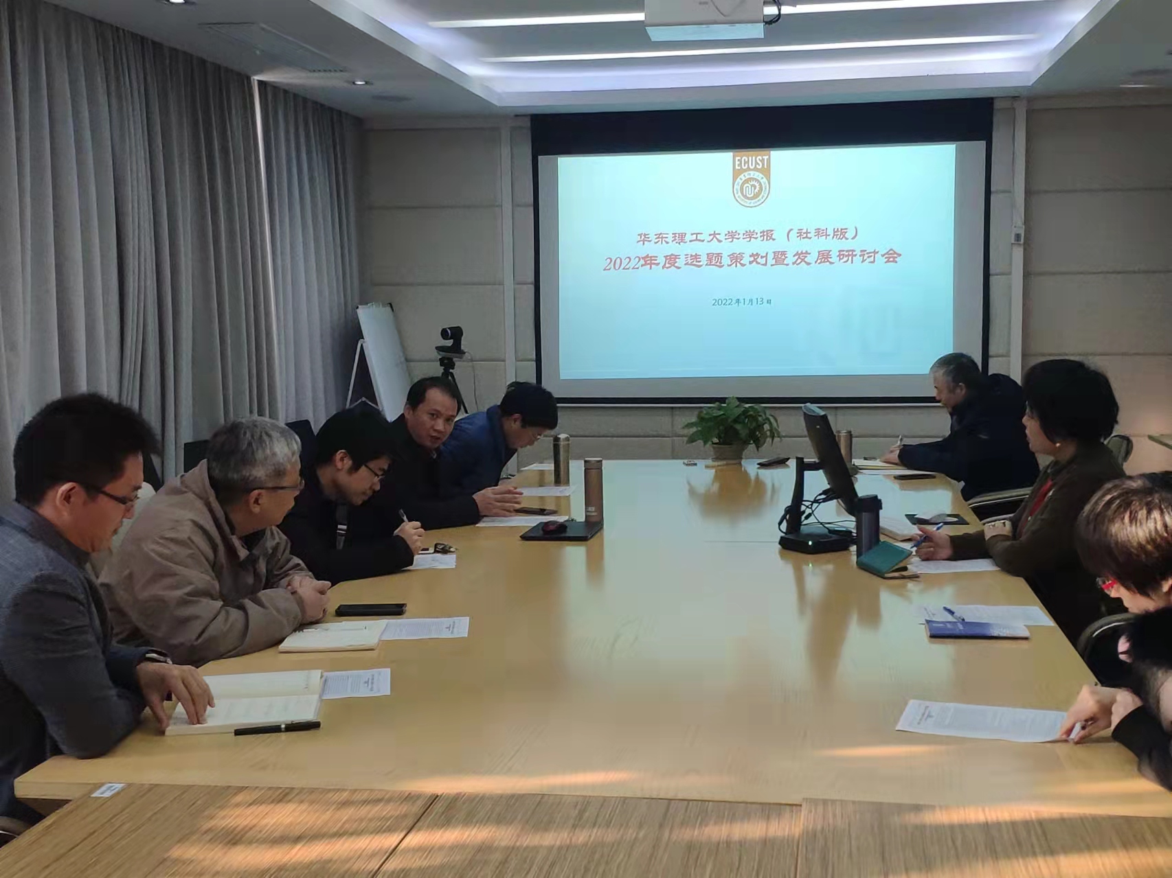 1月13日下午,《华东理工大学学报》(社科版)编辑部召开2022年度选题策划暨期刊建设研讨会。常务副主编汪华、编辑部主任徐丙奎,学术编辑叶敏、吴开泽、徐选国以及编辑部其他老师参加了会议。会议由汪华副主编主持。