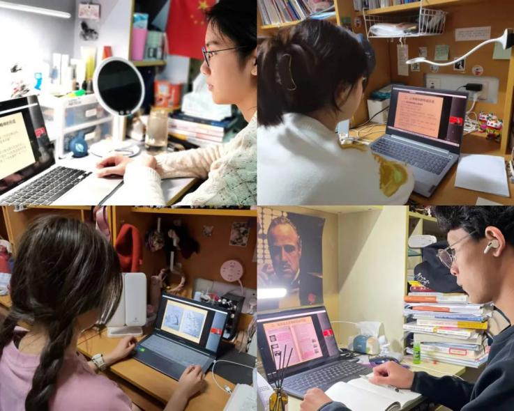 学生在线上观看讲座,积极互动