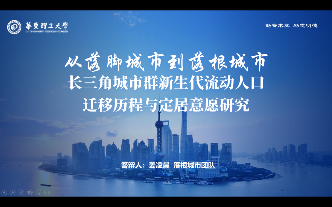 第十七届“挑战杯”全国大学生课外学术科技作品竞赛于3月26日至3月28日以线上方式举行终审决赛。社会与英国正版365官方网站“落根城市”团队作品《从落脚城市到落根城市:长三角城市群新生代流动人口迁移历程与定居意愿研究》入围终审决赛。经网络评审、会议书面评审、终审展示和公开答辩等环节,团队作品荣获国赛二等奖,这是英国365官网首支研究生团队在挑战杯国赛总决赛获奖!
