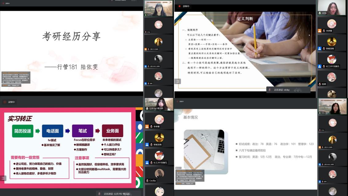 据悉,社会与公共学院始终坚持将就业环节前置,引导学生从低年级开始进行自我探索,明确个人发展目标。本次发展领航系列经验分享会克服了疫情带来的重重困难,通过线上分享的方式,邀请优秀高年级同学分享升学、就业成功经验,实现朋辈互助,促进学院人才培养建设。今后,社会与英国正版365官方网站会继续开展简历修改、结构化面试、介绍信撰写等发展领航活动,帮助同学们尽早做好未来发展规划,做好充足准备,助力学院和学校的人才培养。