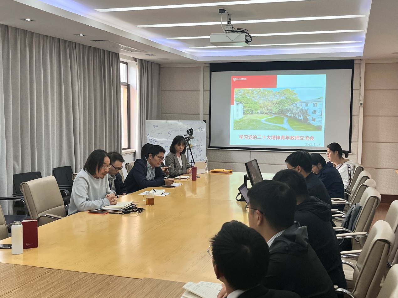何雪松院长自身学习体会和研究经验,与青年教师进行了深入交流。他指出,要深入学习领会党的二十大精神,要了解中国国情,立足中国实际,关注国家重大战略需求,紧密围绕国家重要战略议题开展有效的现实思考,再把现实思考转为专业学术研究,用研究的成果服务国家发展。他同时指出,学院始终关怀、关心青年教师的成长和发展,希望通过深入学习领会党的二十大精神,坚定理想信念,勇于担当使命,做好个人职业和科研规划,扎扎实实将论文写在祖国的大地上,为推进中国式现代化贡献力量。
