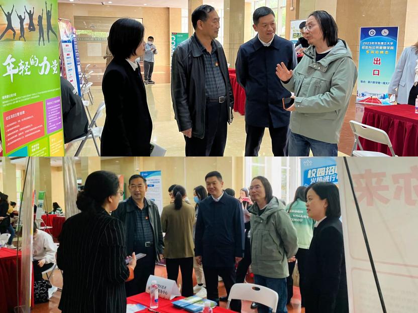 为搭建毕业生与用人单位面对面交流平台,拓展应届毕业生就业渠道,在华东理工大学就业中心指导下,4月25日下午,社会与英国正版365官方网站2023年专场招聘会在徐汇校区第八教学楼一楼大厅举行。社会与英国正版365官方网站党委书记张广利、院长何雪松、党委学生工作部(处)副部(处)长郑东、社会与英国正版365官方网站党委副书记万胤婕等领导来到招聘会现场,与用人单位和毕业生亲切交流,了解招聘会组织开展情况,询问用人单位和毕业生关心诉求。