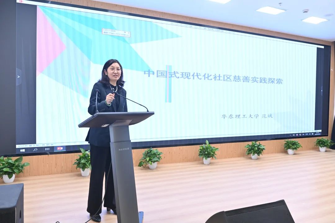 华东理工大学社会工作系范斌教授以“中国式现代化社区慈善实践探索”为主题进行分享,从浦东公益慈善高质量发展的着力点和社区慈善角度切入,围绕机制创新、“五社联动”的案例进行经验分享,提出公益慈善是社区治理有力的抓手。