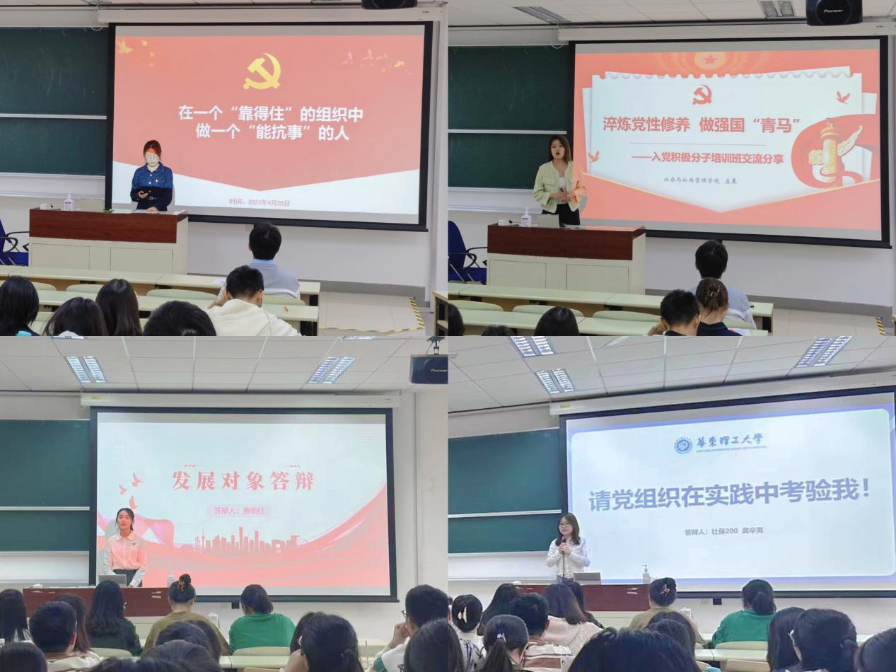 为深入学习宣传贯彻党的二十大精神,推进学习贯彻习近平新时代中国特色社会主义思想主题教育,切实做好入党积极分子的培养教育工作,进一步提高入党积极分子的理论素养。2023年4月至5月,社会学院举办入党积极分子培训班,学院各年级的92名入党积极分子参加了本次培训。本次培训共安排5次课程,包括三场主题党课、一场发展对象公开答辩观摩及一场党员分享交流,并在培训课程结束后进行了结业考试。