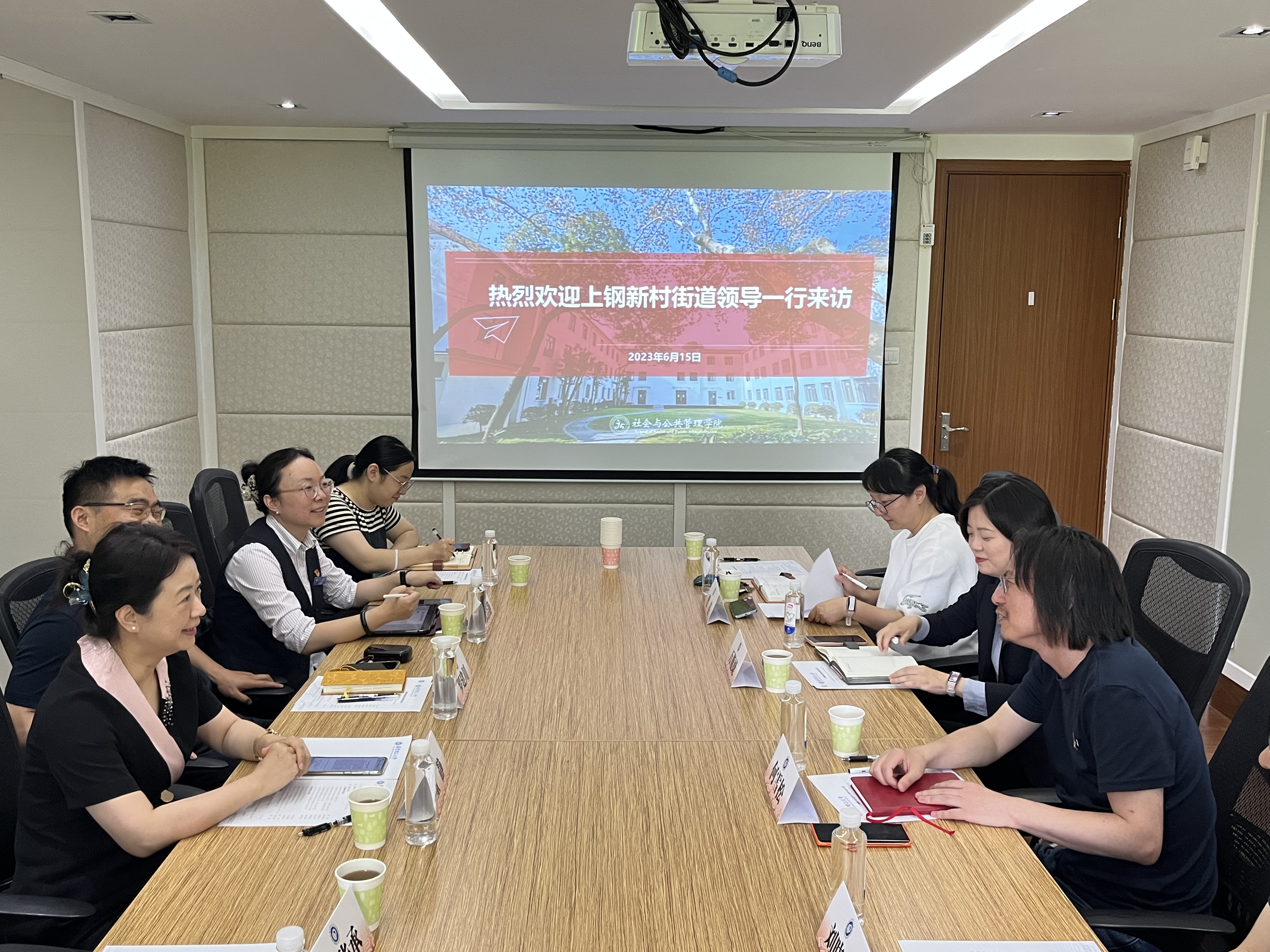 党委副书记万胤婕首先对上钢新村街道党工委副书记董静一行的到来表示欢迎,经过多轮互动,校地双方已经在学生实践、青年志愿、国情教育等方面达成了合作共识并开展了初步的活动,感谢街道为学生实践提供的机会。