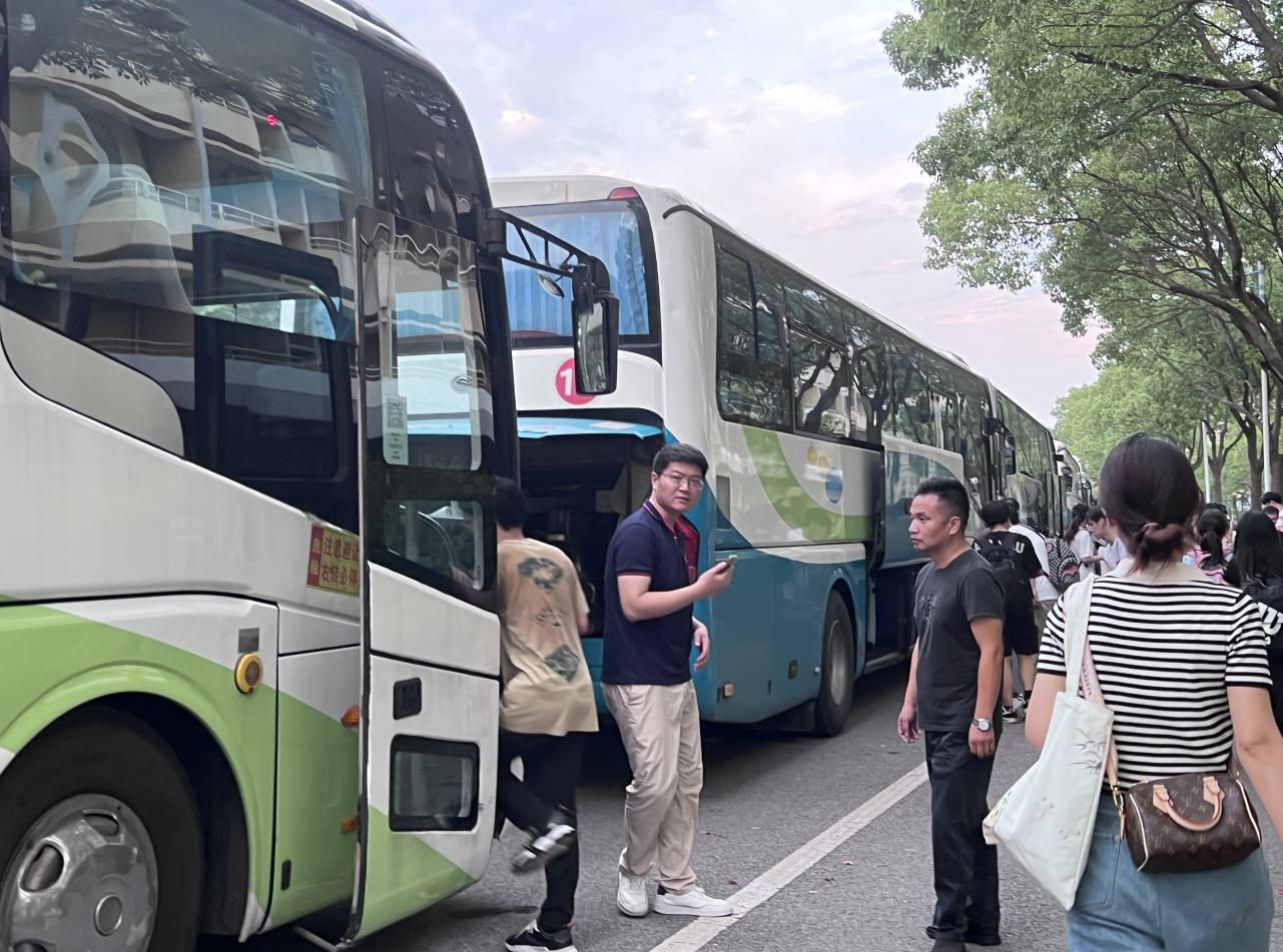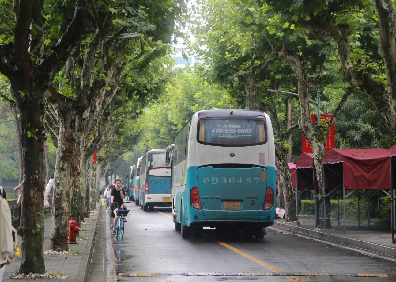 五点半,第一批搬迁学生上车,怀着对奉贤校区的不舍和对徐汇校区的期待,开始了新的校园生活。