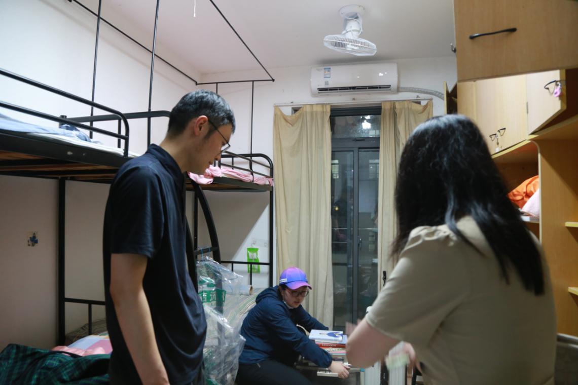 8日傍晚,老师们来到学生宿舍查看学生们行李的准备情况,并嘱咐了第二天搬迁时的注意事项。