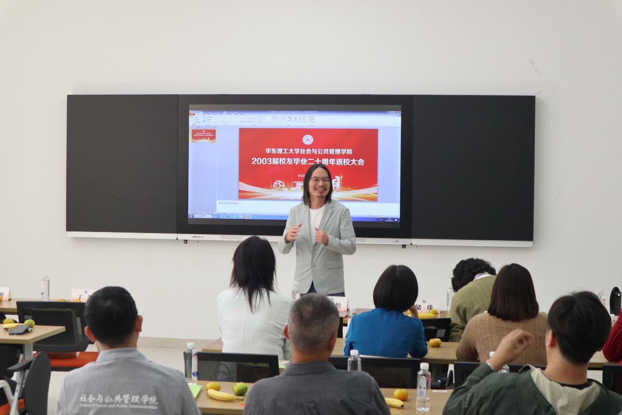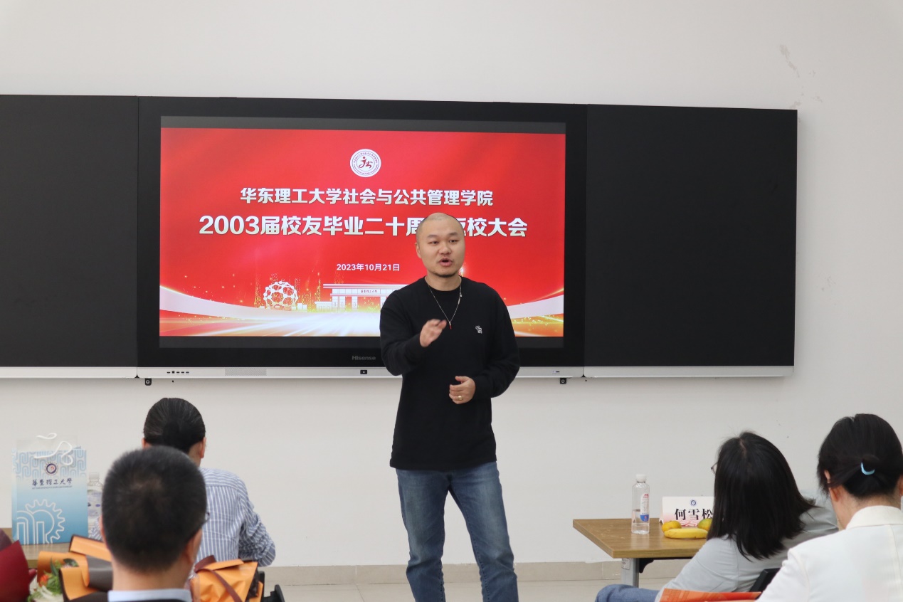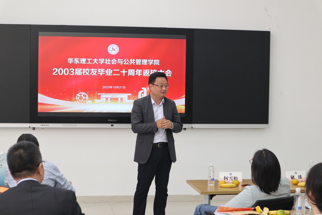 上午9点半,返校大会在第三教学楼109会议室隆重举行,大会由学院党委副书记储琰主持,学院院长何雪松、教师代表俞慰刚、丁灏出席会议,与校友们共忆青葱岁月。