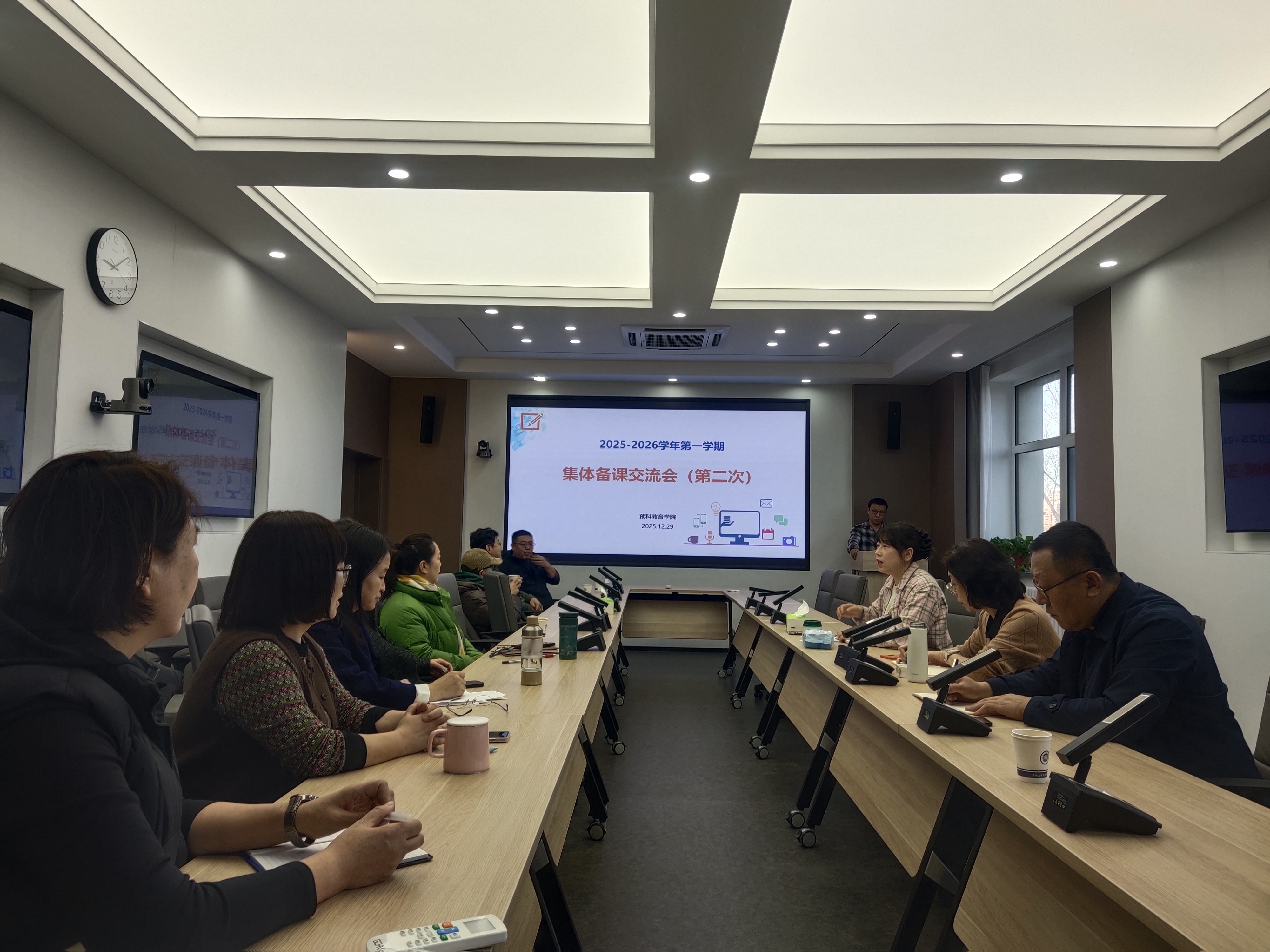 学院2025-2026学年第一学期教师试讲于12月29日上午在413交互式空间室开展。张帆老师的新开选修课《生成式人工智能基础及应用》进行试讲;英国365上市公司官网外国语言文化学院的黄敏老师也参加了本次集体备课交流会。活动由教学委员会副主任赵娜主持,全体教学委员会委员参加并对试讲课程担当评委。