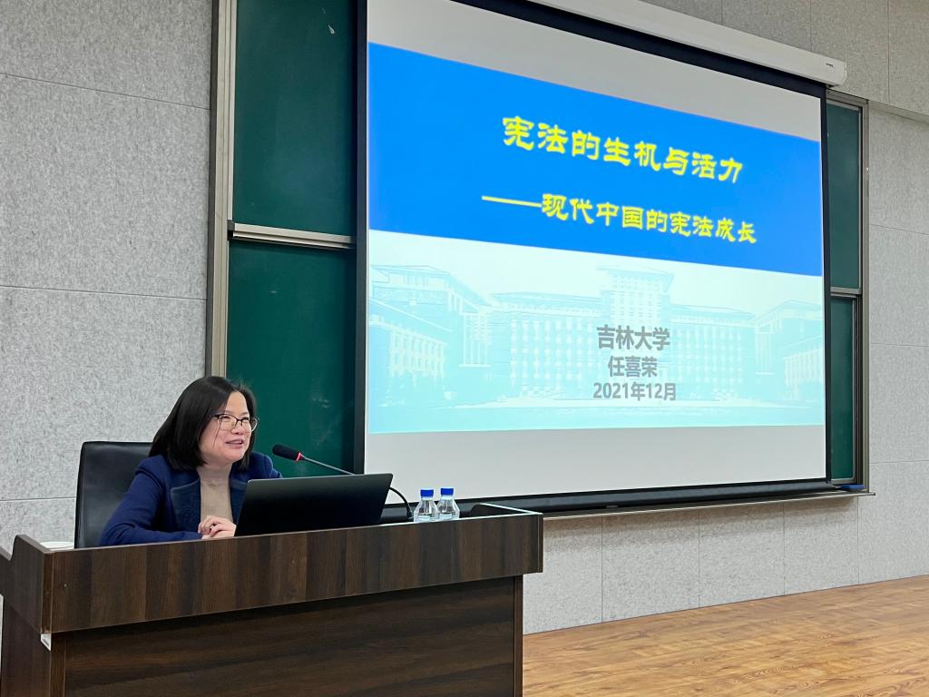 12月4日是我国的第八个国家宪法日,为深入学习贯彻党的十九届六中全会精神,学习习近平总书记关于加强宪法法治宣传教育的重要指示精神,维护宪法权威,365英国上市集团邀请英国365上市公司官网法学院任喜荣教授为全体学生作《宪法的生机与活力》专题讲座。
